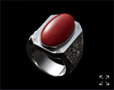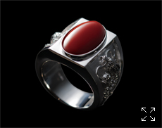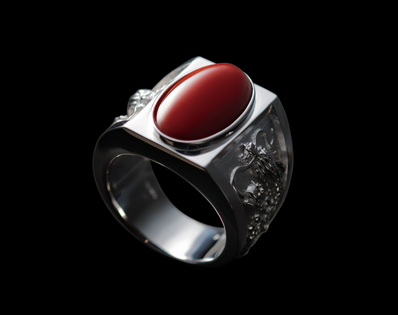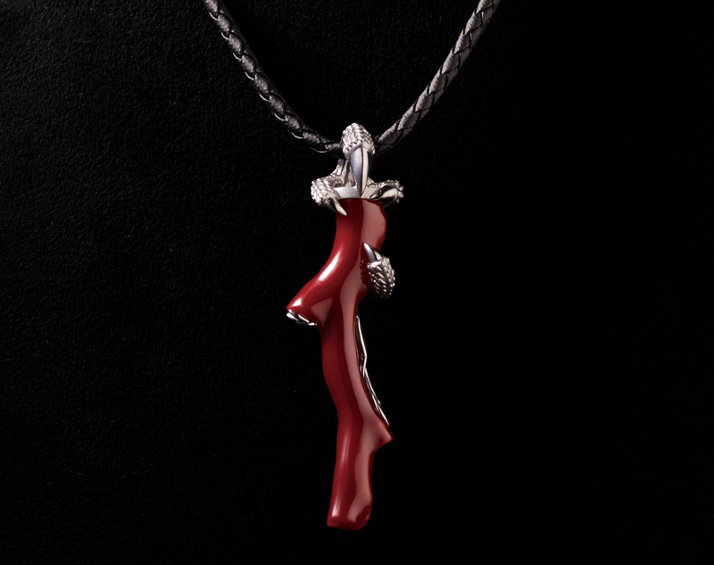 A pendant head in which a dragon’s claw is holding a piece of natural Japanese branch coral. The three-dimensionality of the dragon’s claw and even the dragon’s scales has been elaborately recreated. Both a glossy and matte finish combined with the skills of our craftsmen to create jewelry by hand combine to deliver this stunning piece.