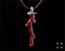 Material : Blood red branch coral / K18WG(Chain not included) / Black plated / Matte finish